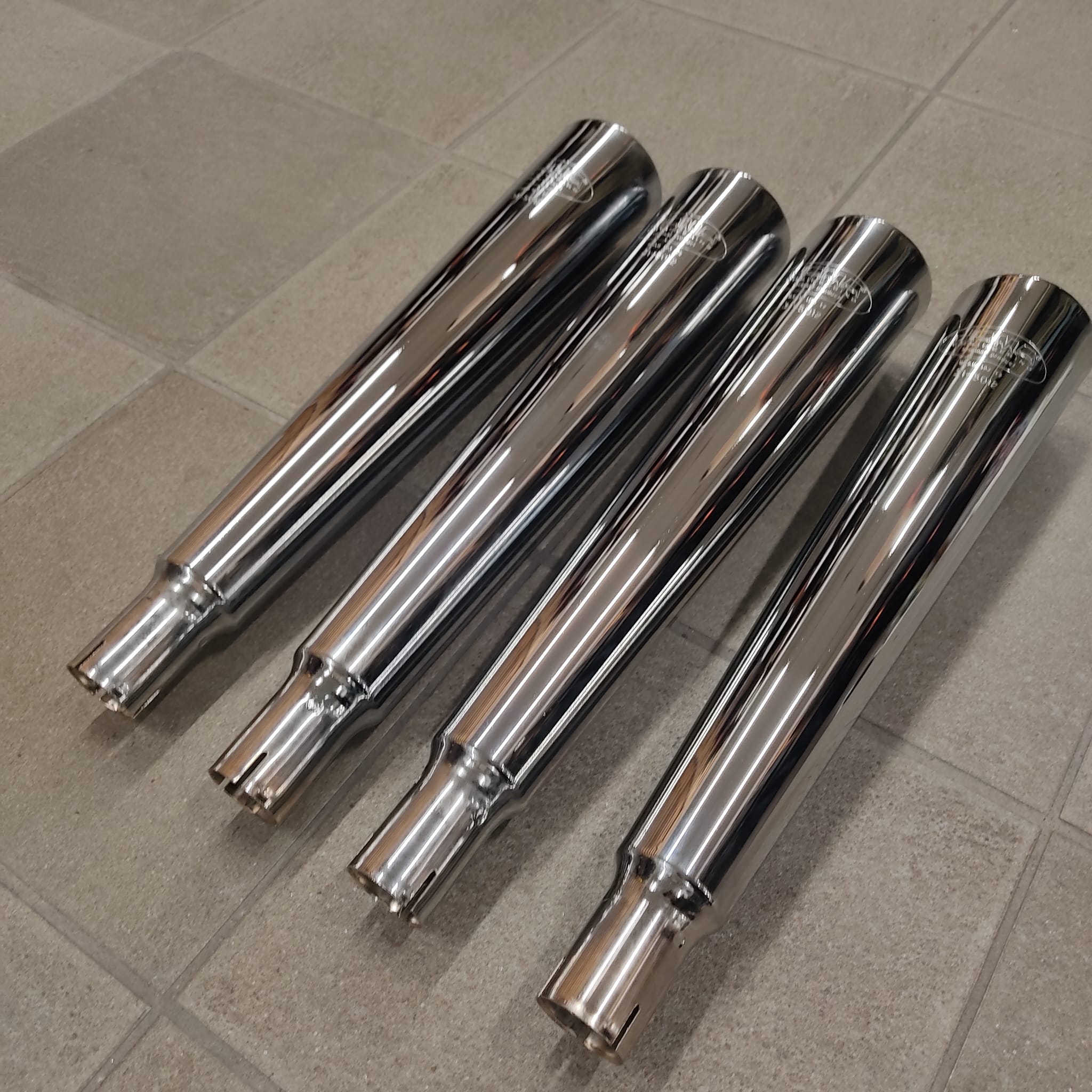 Silenziatori Yama 4-in-4, cromati, mai montati e ancora nella confezione originale. INTROVABILI!